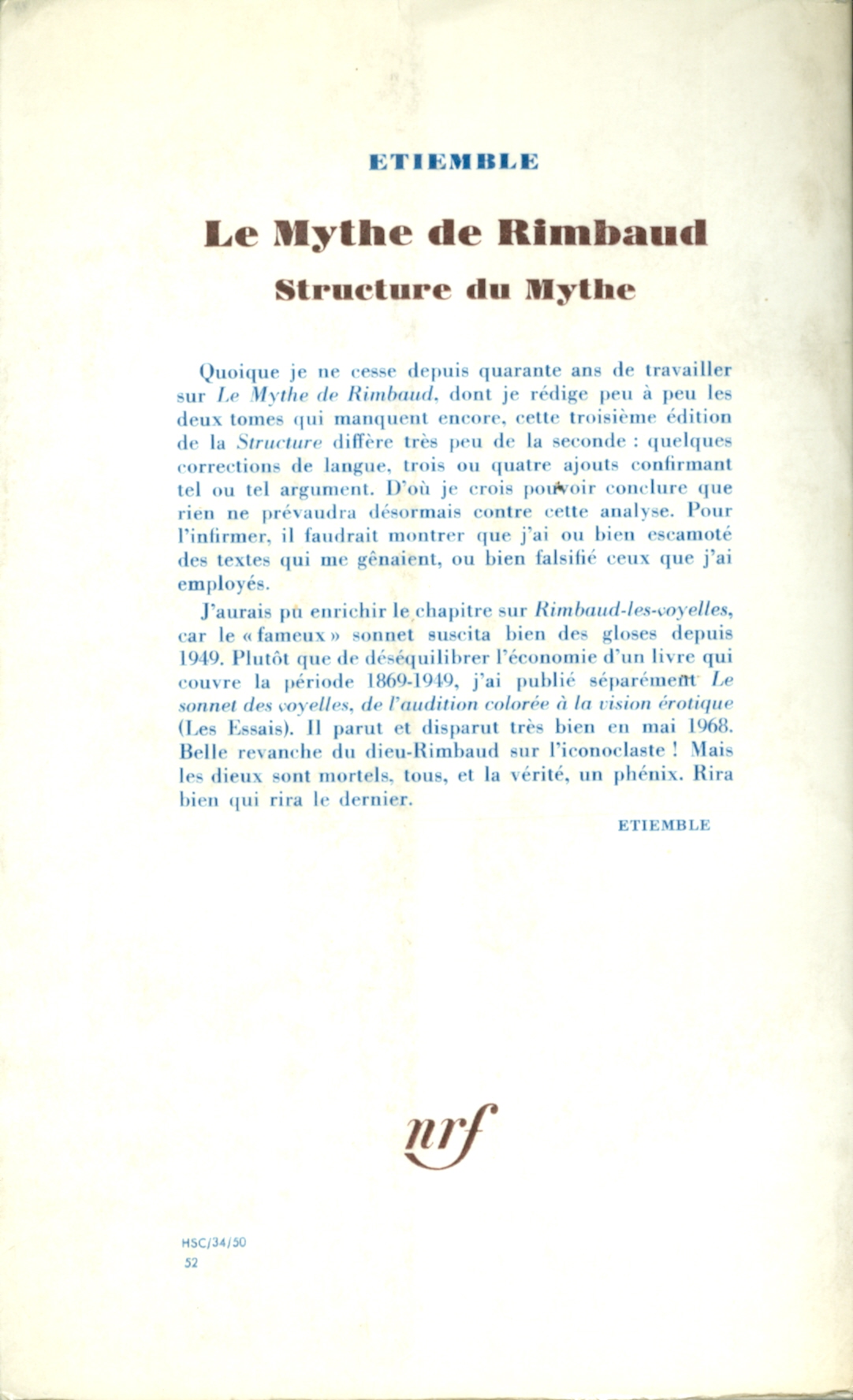 Le mythe de Rimbaud: Structure du mythe