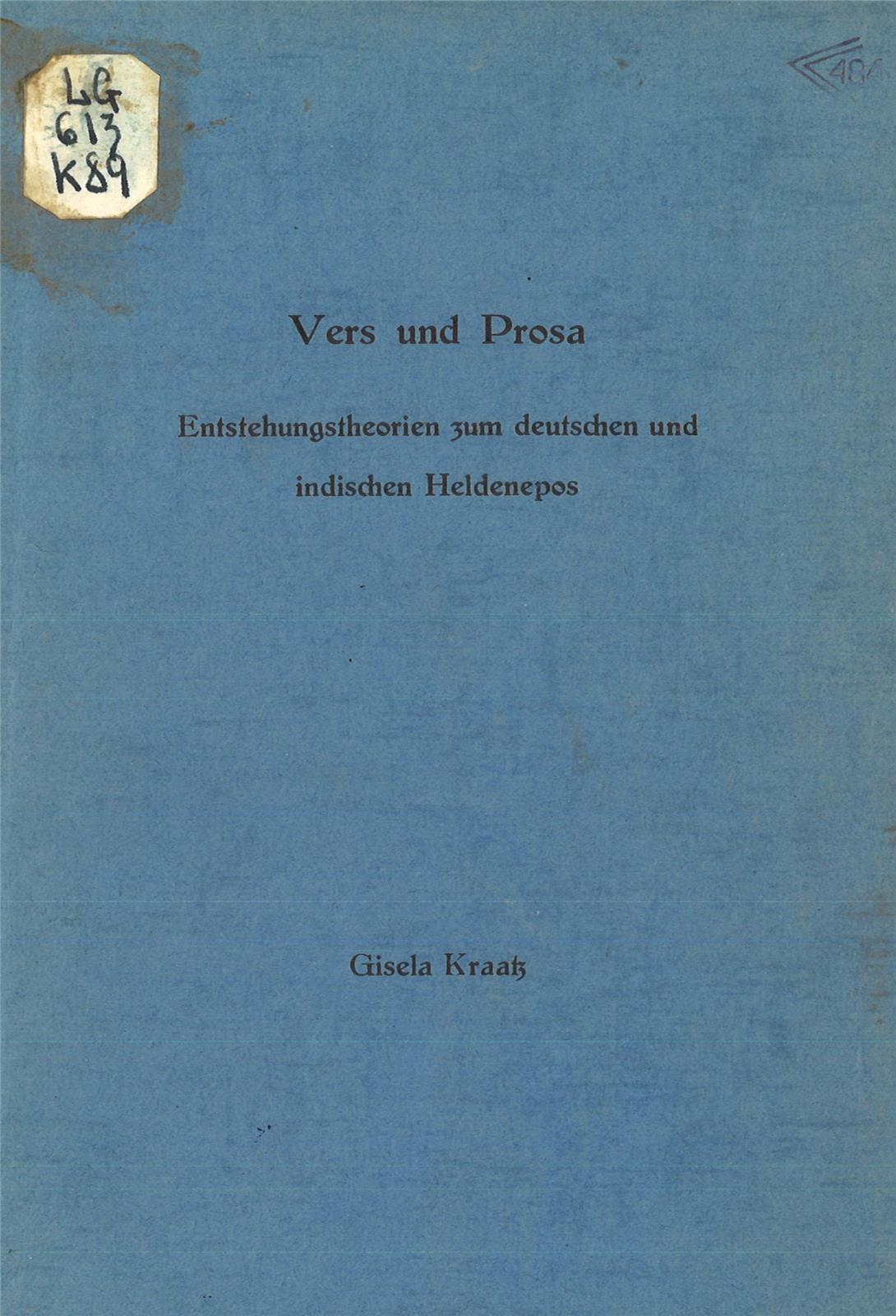Vers und Prosa: Entstehungstheorien zum deutschen und indischen Heldenepos: Inaugural-Dissertation