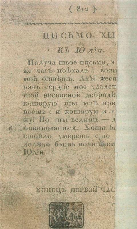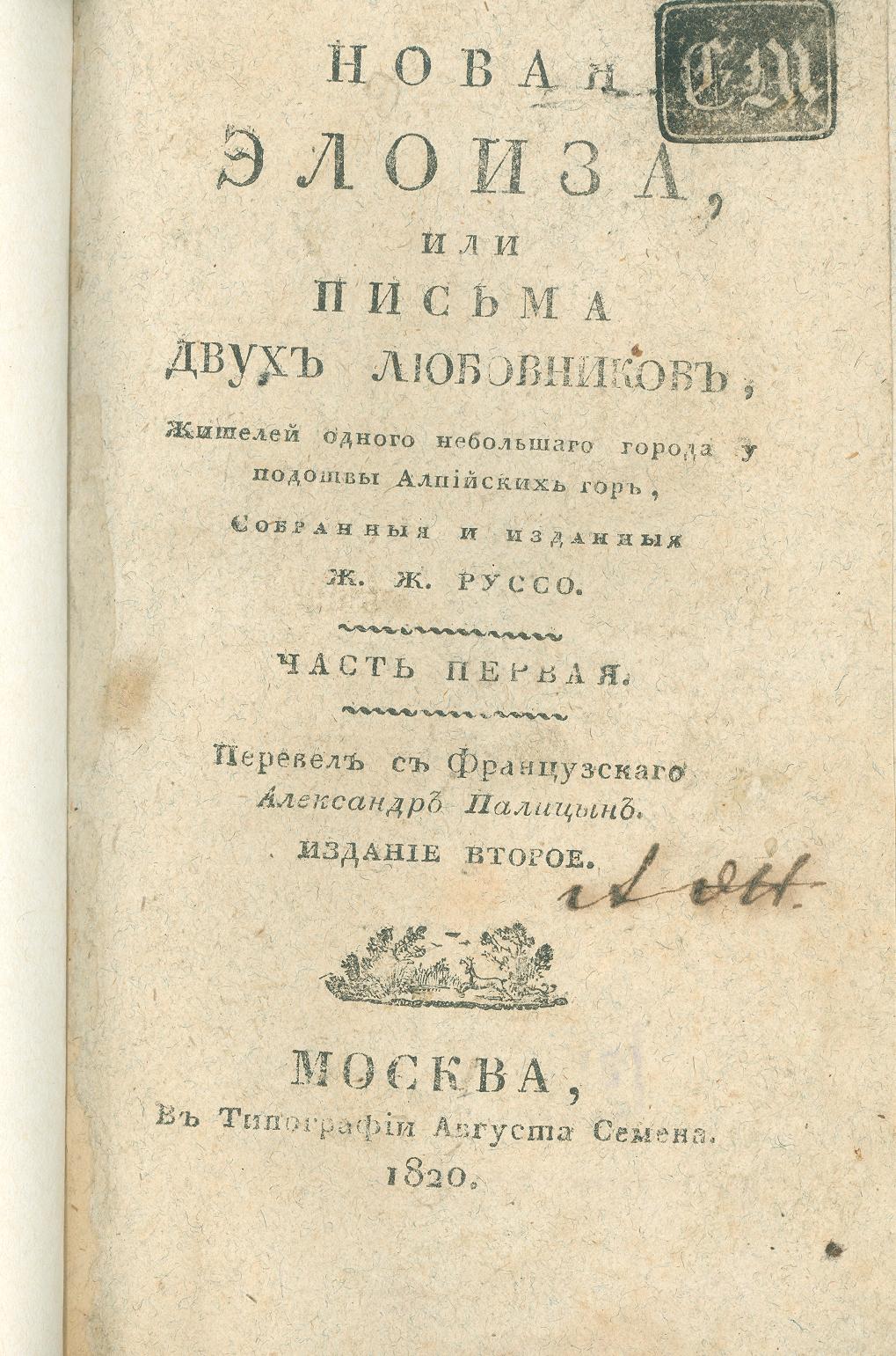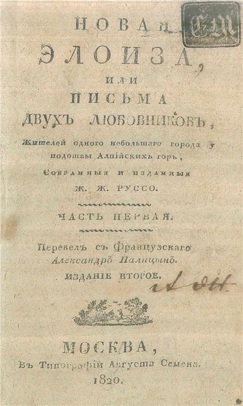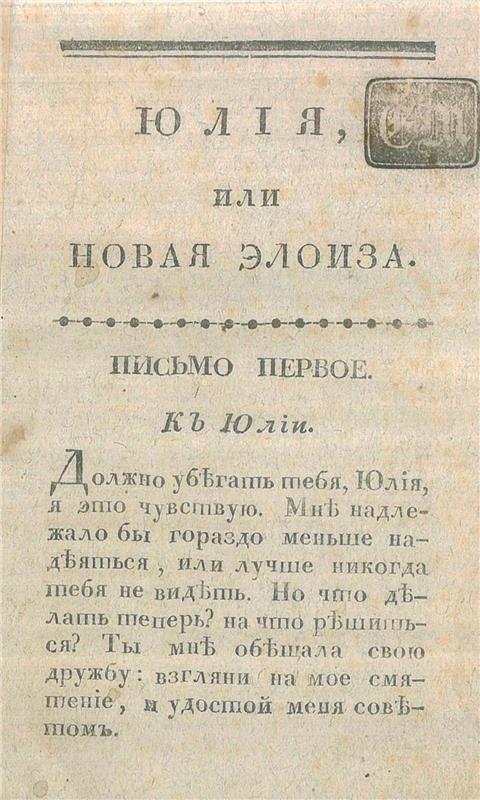 Новая Элоиза, или Письма двух любовников, жителей одного небольшаго города у подошвы Алпийских гор, [Ч.1]